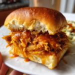 You make these sliders with shredded chicken and buffalo sauce. They have melted cheese on soft rolls. You serve them as a meal or snack.