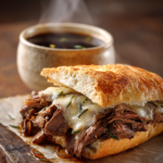 These sandwiches pair beautifully with a crisp green salad or some roasted potatoes. For a classic deli feel you can serve them with a side of potato chips and a big pickle spear. Make sure to serve the dipping broth while it is piping hot so it warms the bread and the meat as you dip.