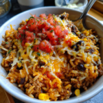 Keywords: taco rice bowl, beef, rice, quick dinner, easy meal