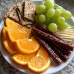 You can honestly get all of this ready in under 15 minutes which is great when you are rushing out the door. Start by washing all your fresh fruit really well. I like to slice the oranges into eighths because they are just the right size for small hands to grab. If you are using meat, just roll up those lean beef or turkey slices into little cylinders. I always put everything into individual bags or small containers. This stops the big bag scramble where every kid is reaching into the same pile of food.